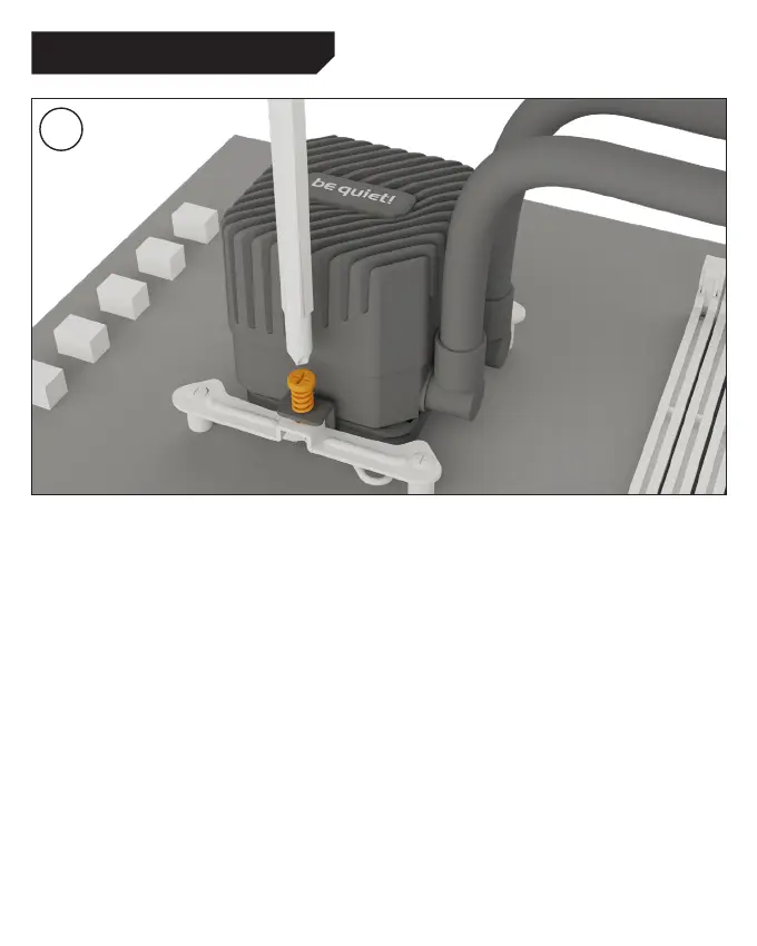 將CPU水冷頭居中放置在Intel安裝支架上,以便將CPU水冷