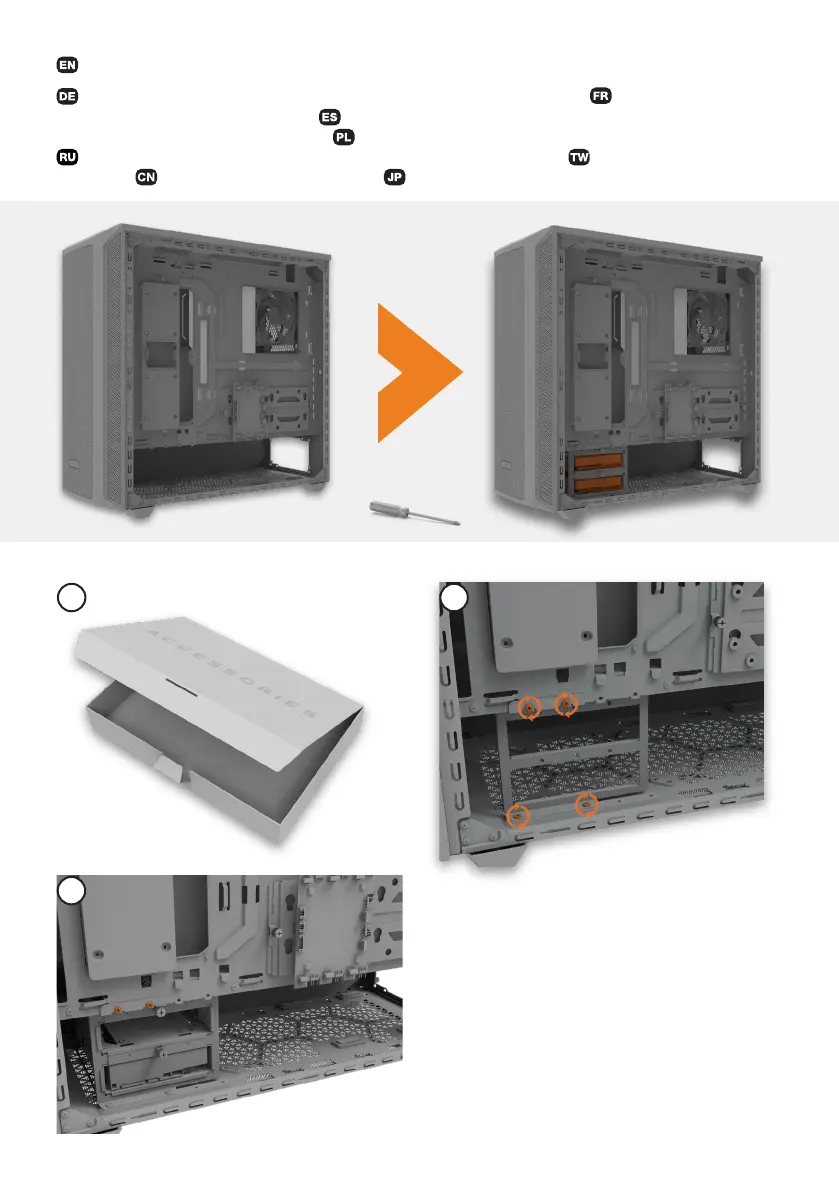 МОНТАЖ СЛОТА С HDD ПРИ УСТАНОВКЕ ДЛИННОГО БЛОКА ПИТАНИЯ | 裝置大型電源供應器時,硬碟架