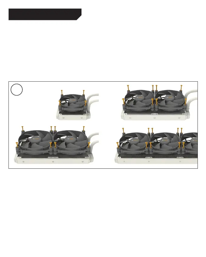 Zamocuj wentylatory (2) do radiotora za pomocą śrub mocujących wentylatory (13). Zalecana jest