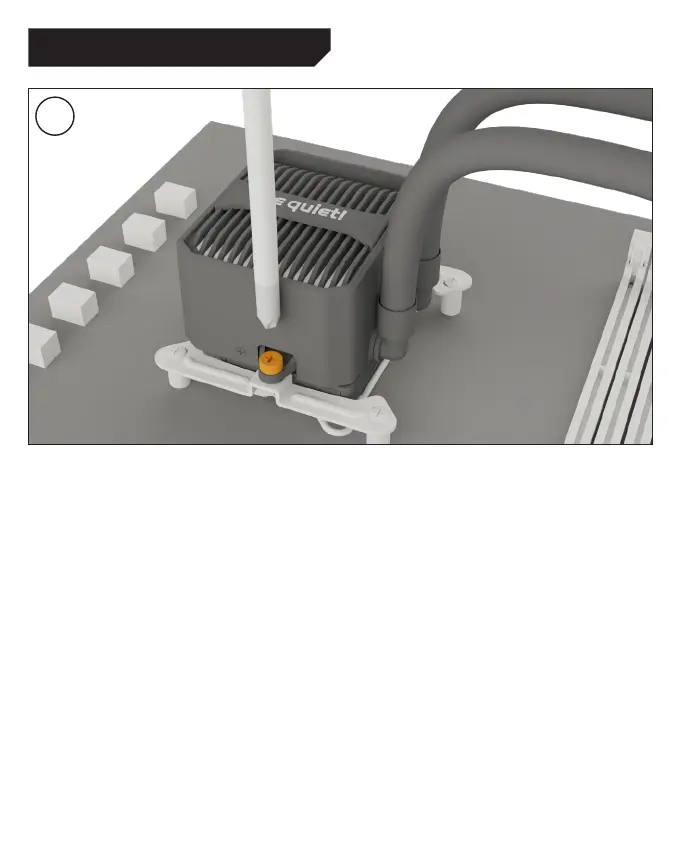 將CPU水冷頭居中放置在Intel安裝支架上,以便將CPU水冷