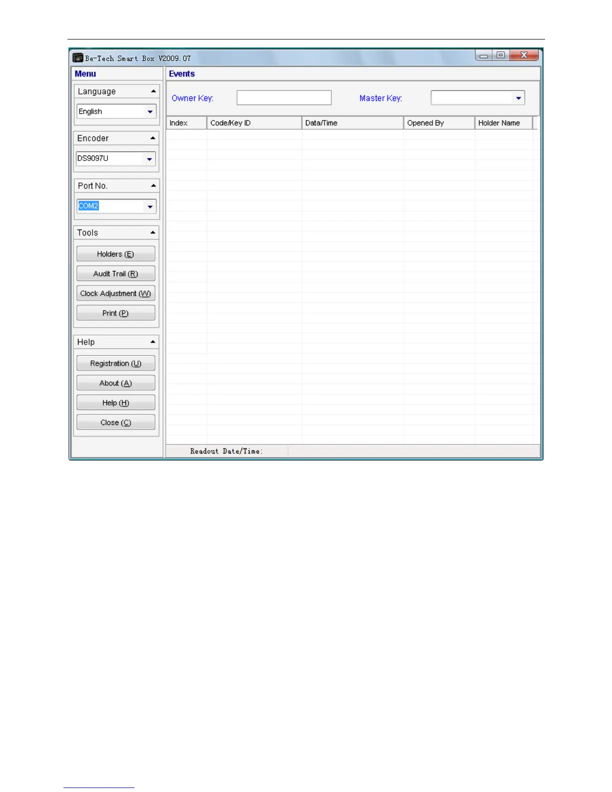 The button Holders is used to read key ID, register holder key, revise holder key and delete holder key.