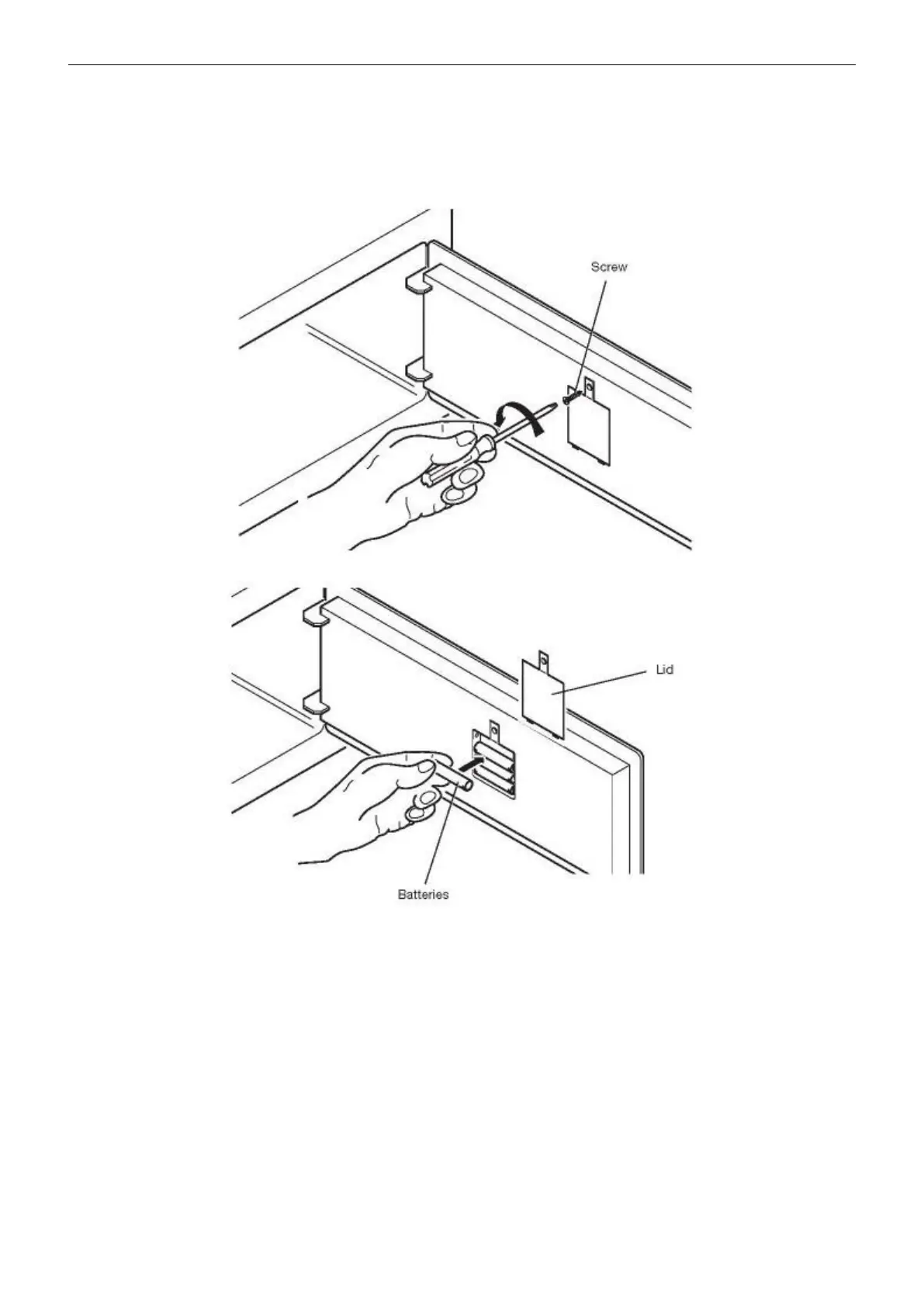 Remove the protective lid unscrewing the screws, and fit the batteries into their seats.