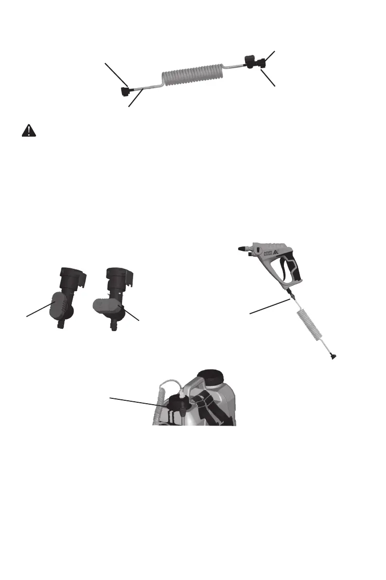 them will be connected to the sprayer gun and outlet hole of the tank. Press the clip