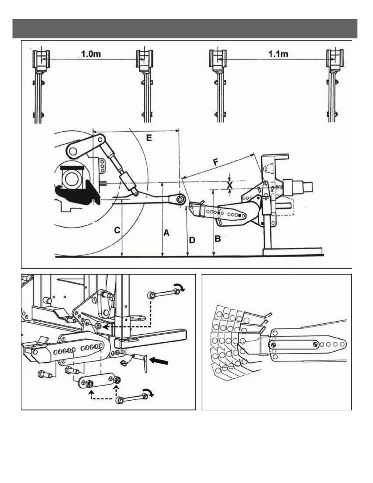 equals dimension ‘C’ minus measurement ‘X’ and also when the draft link is horizontal and the rocking