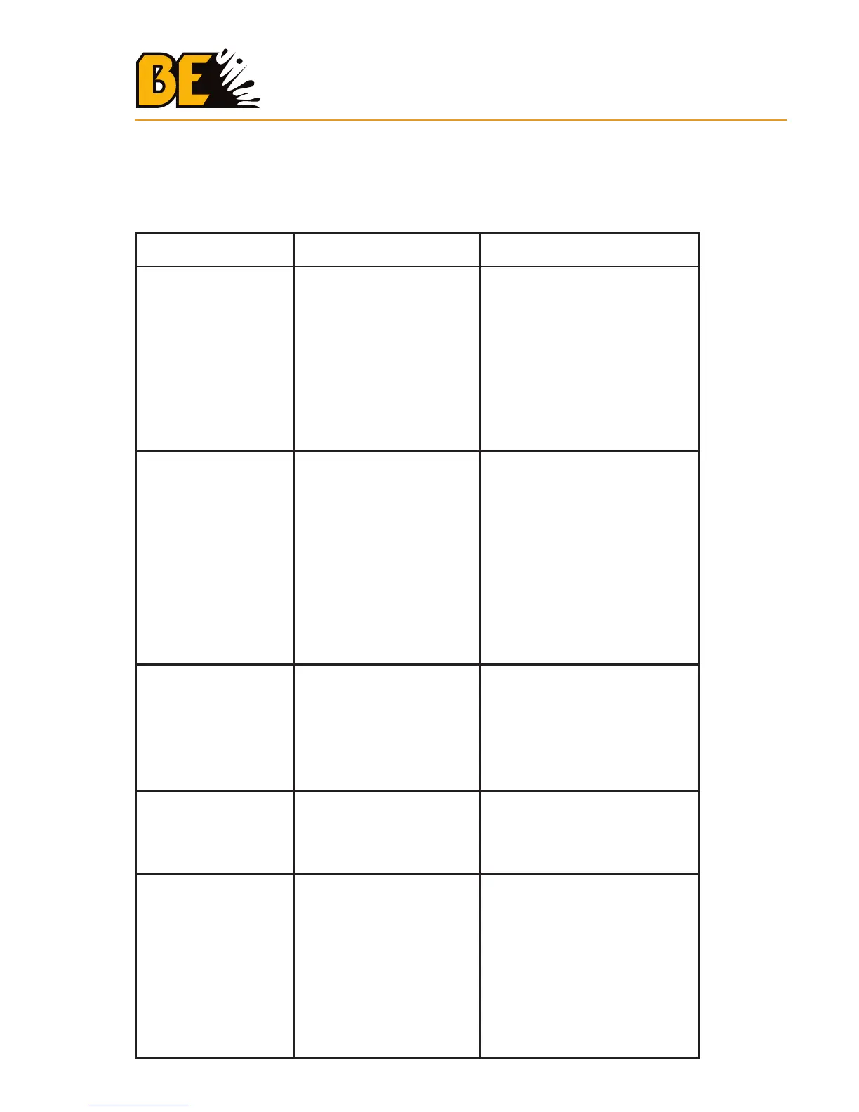 TROUBLESHOOTING CHART