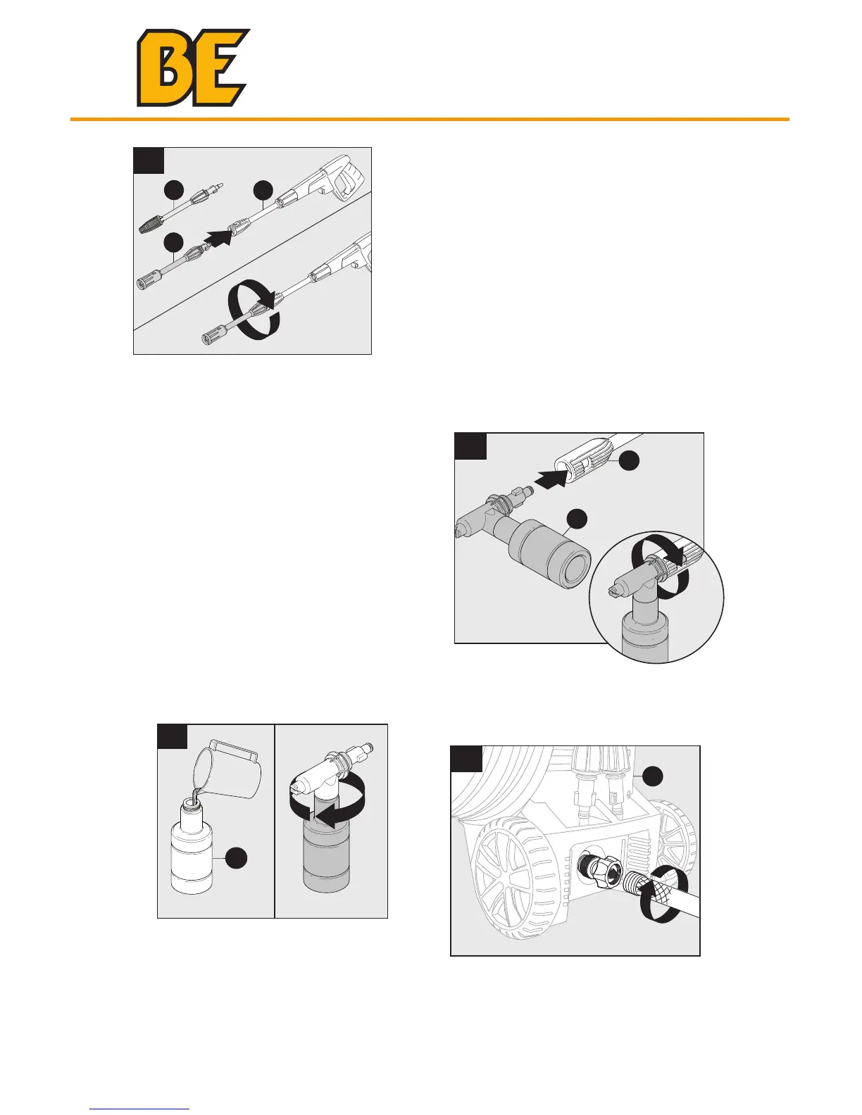 Insert detergent bottle (H) into extension lance (J),