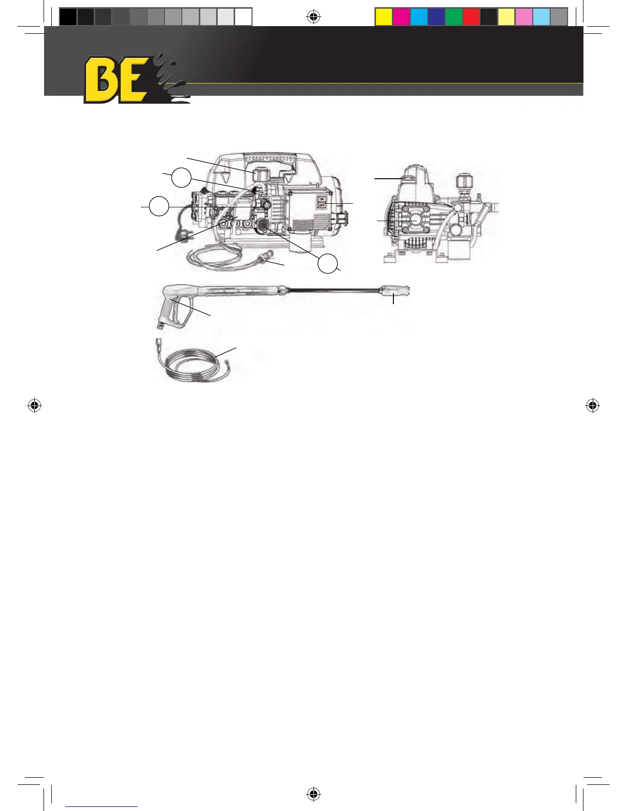 1. Connect one end of the high pressure hose to the gun (A) and the other to the outlet connection (B).