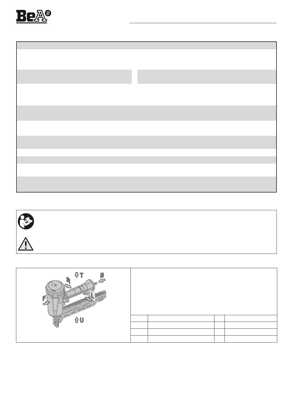 Leverance Trykluft-sømpistol, generel brugsanvisning, apparatspecifikke oplysninger