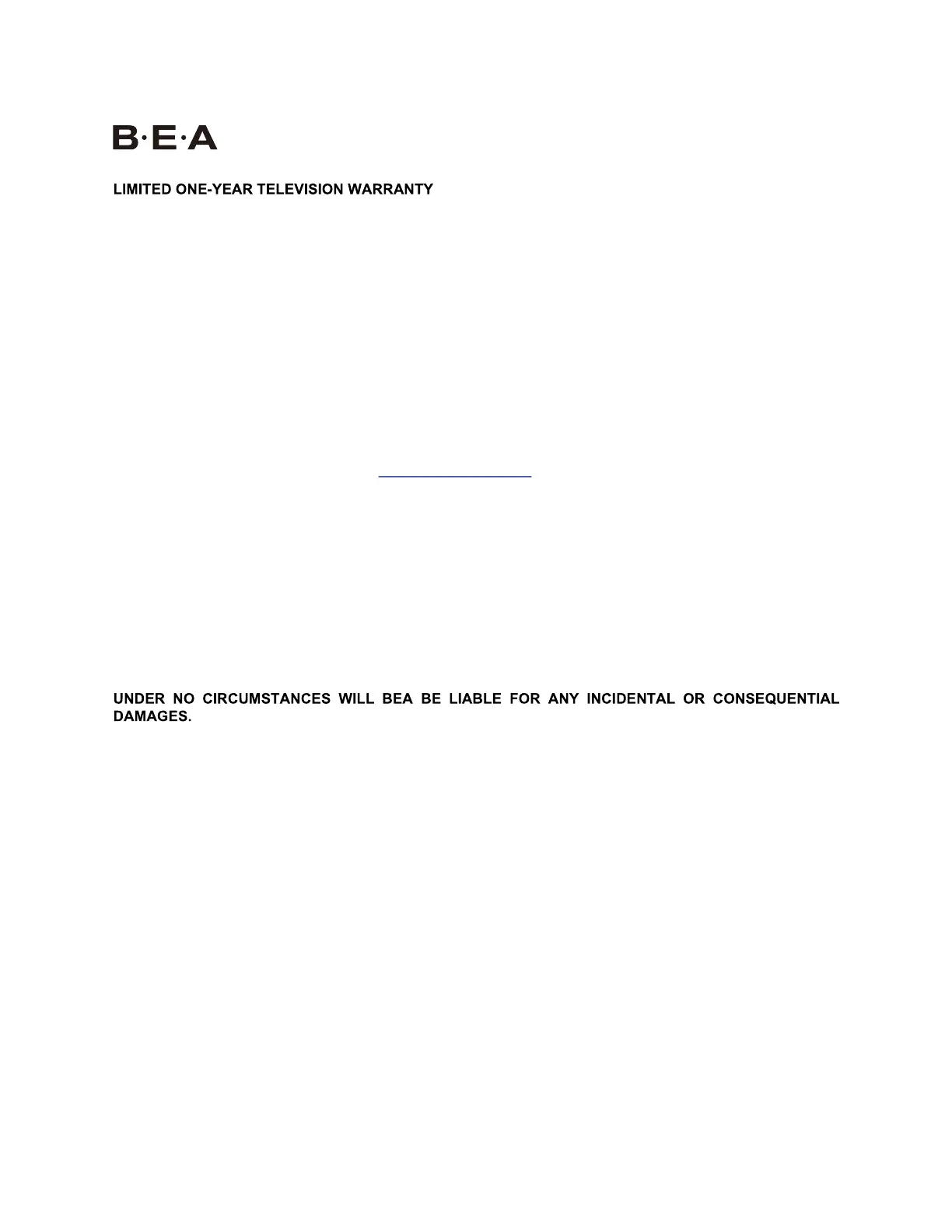 For technical support, visit our website www.beatelevision.com or call the BEA Technical Support Center for