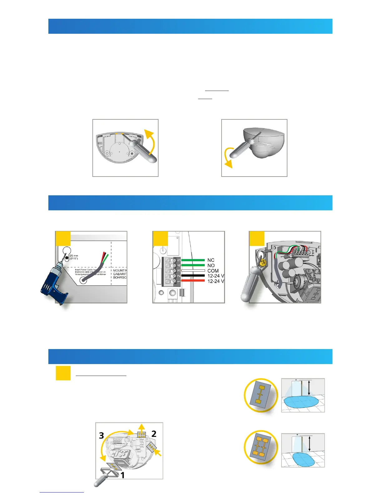 ◊ If mounting horizontally, the sensor must be mounted in front of the door.