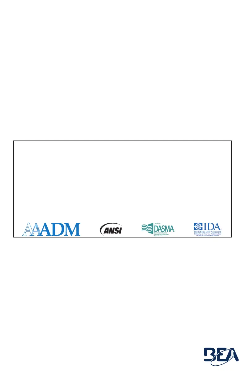 BEA, Inc. strongly recommends that installation and service technicians be AAADM-certified for pedestrian doors, IDA-certified for