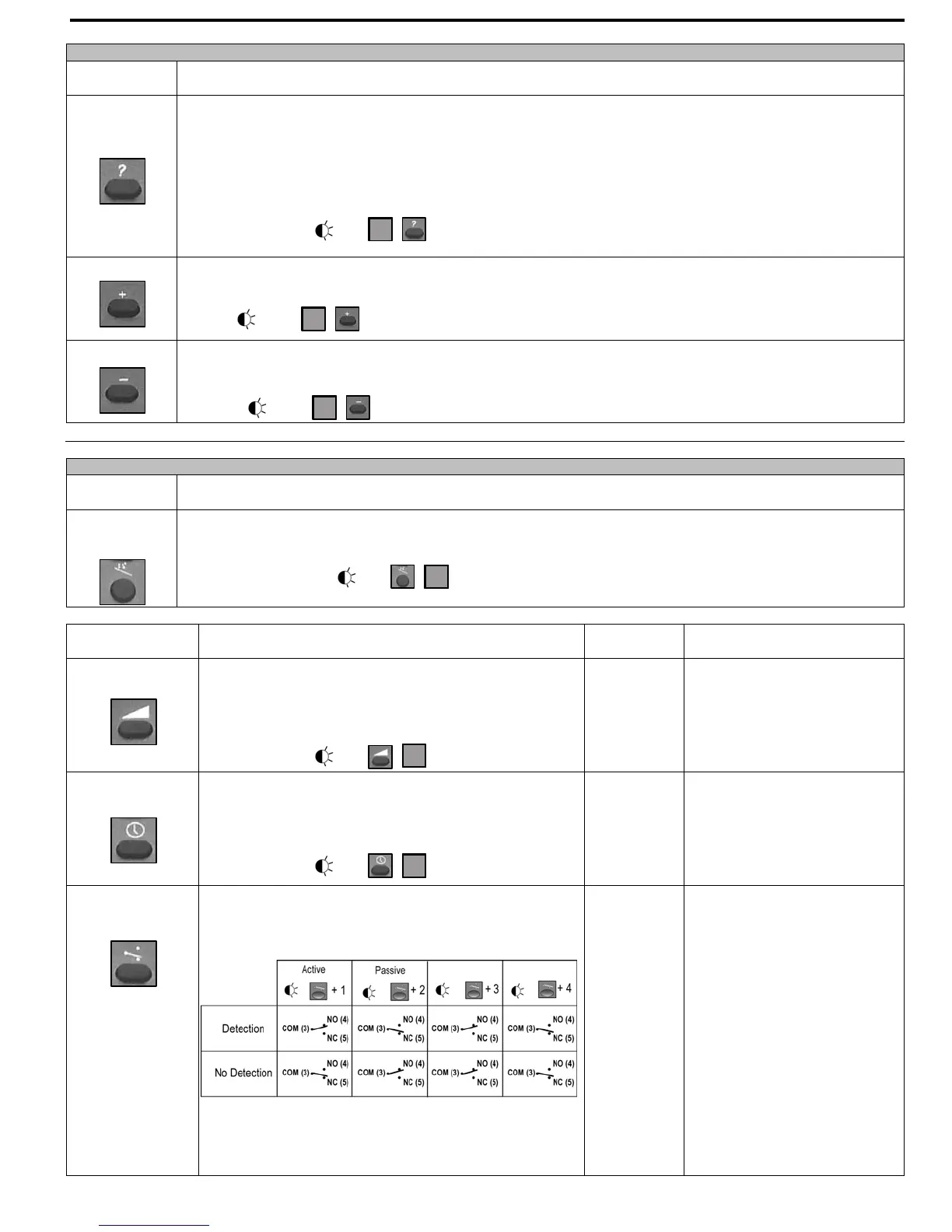 Example: SENSITIVITY Key (6) – 7 flashes of the green LED: the sensitivity is set at the value 7.