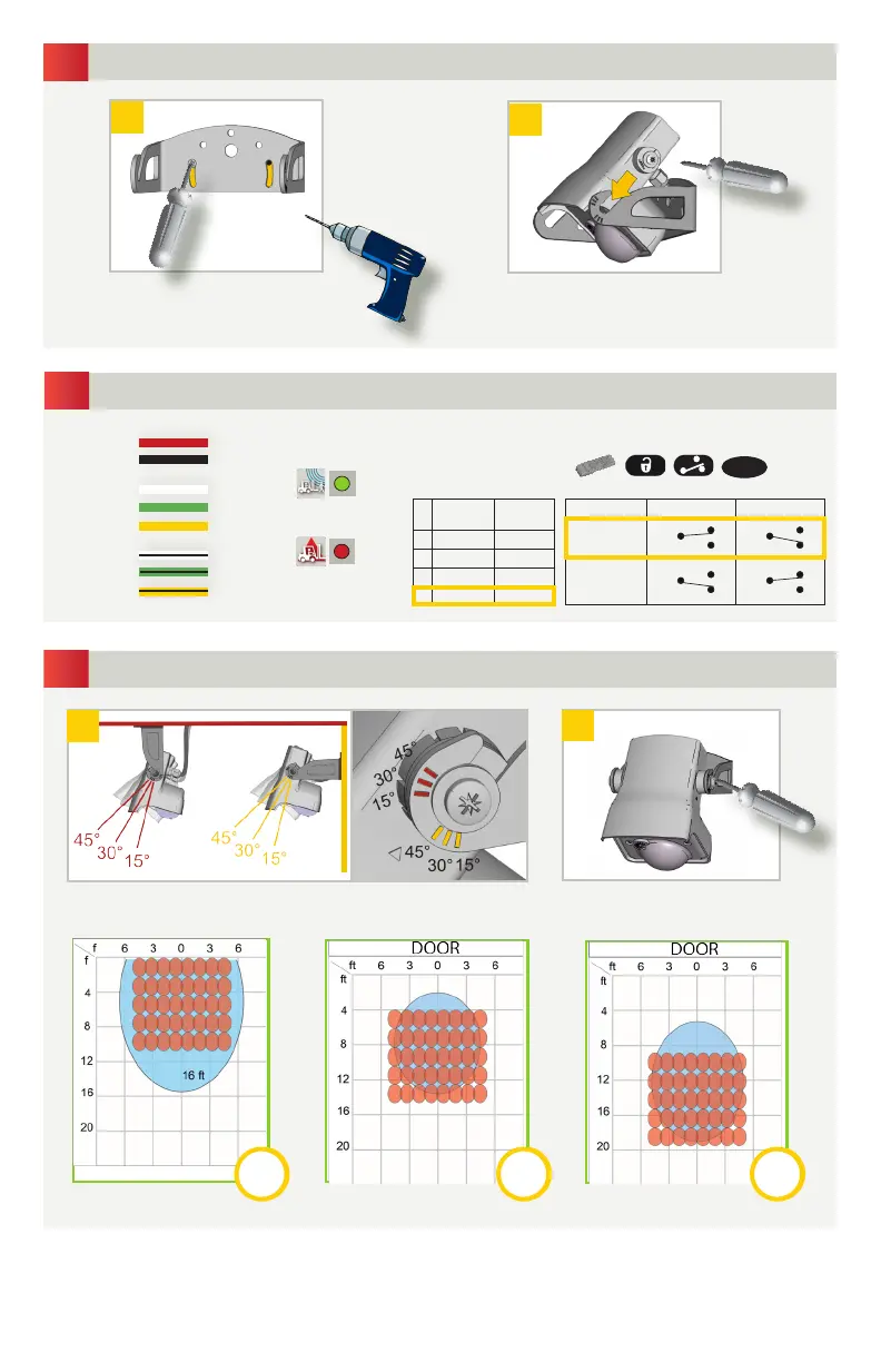 • It’s important to adjust the sensor angle to position the deteciton fields correctly for your application. Utilizing a mounting bracket,