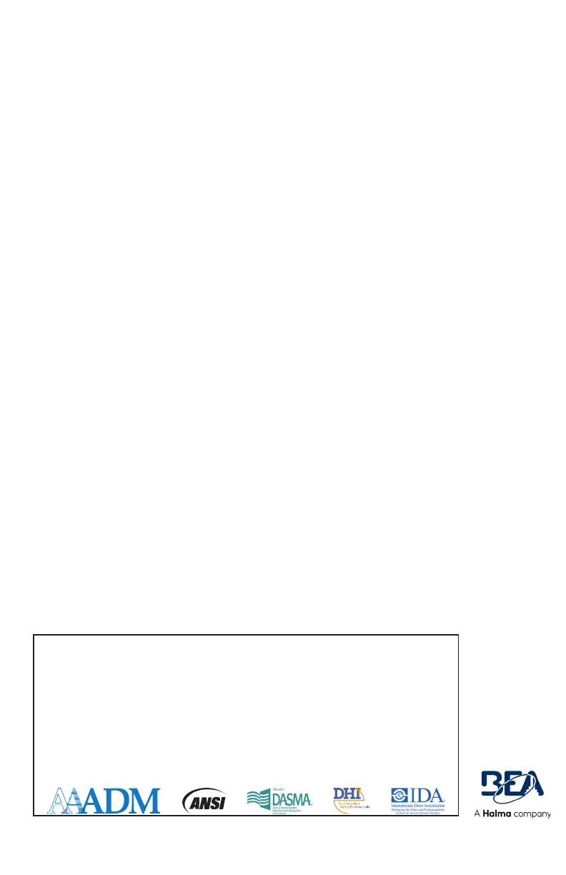 BEA, Inc. strongly recommends that installation and service technicians be AAADM-certifi ed for pedestrian doors, IDA-certifi ed for doors/