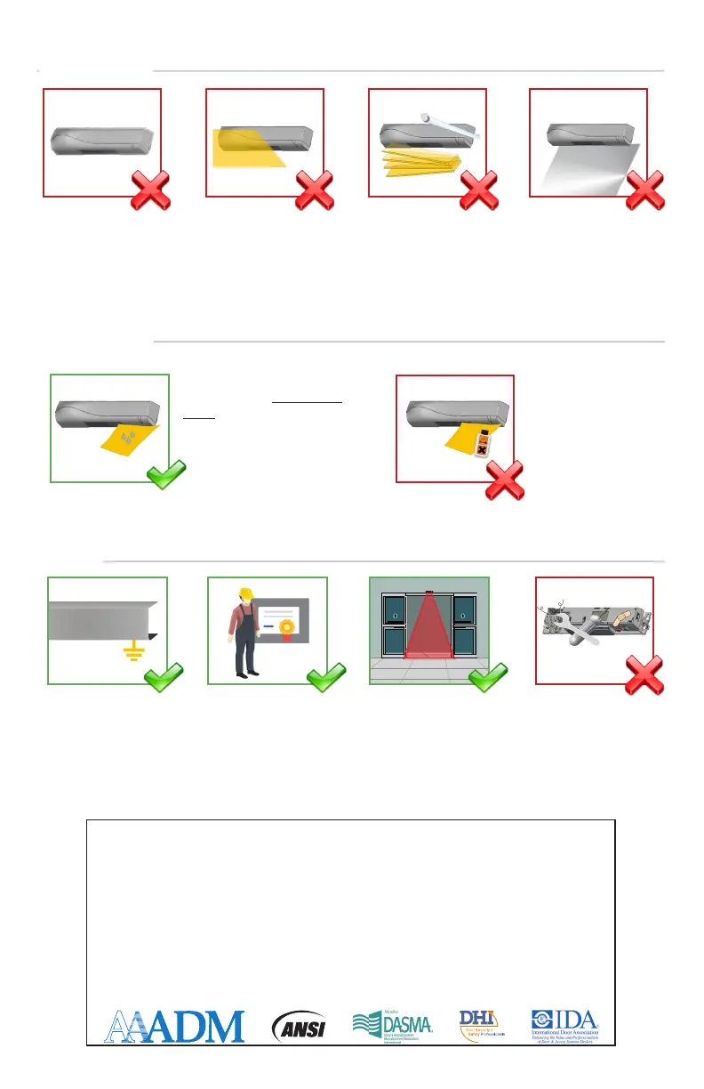 BEA, Inc. strongly recommends that installation and service technicians be AAADM-certifi ed for pedestrian doors, IDA-certifi ed for doors/