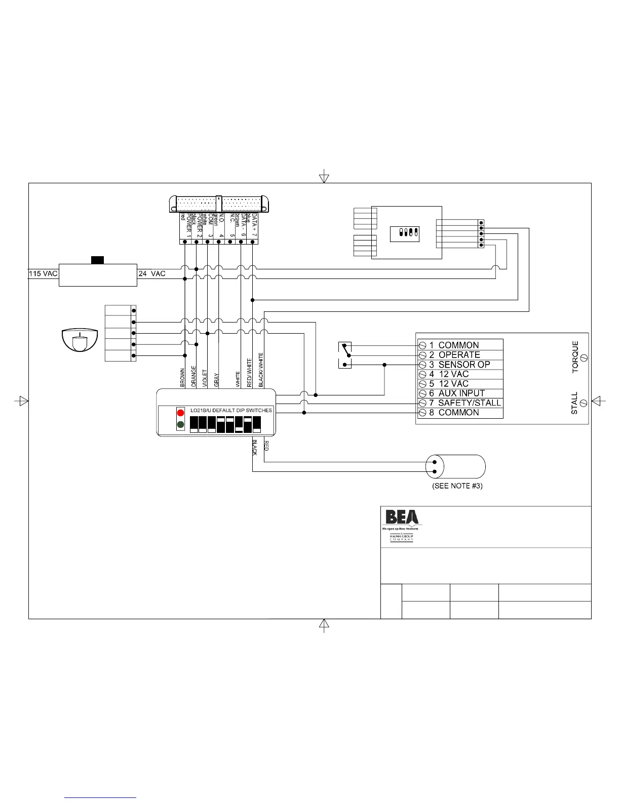 NOTES: 1) LO21U DIPSWITCH SETTINGS #1-5 (LOCK-OUT TIME), #6 (DOWN/ON), #7 (UP/ OFF), #8 (DOWN/ ON).