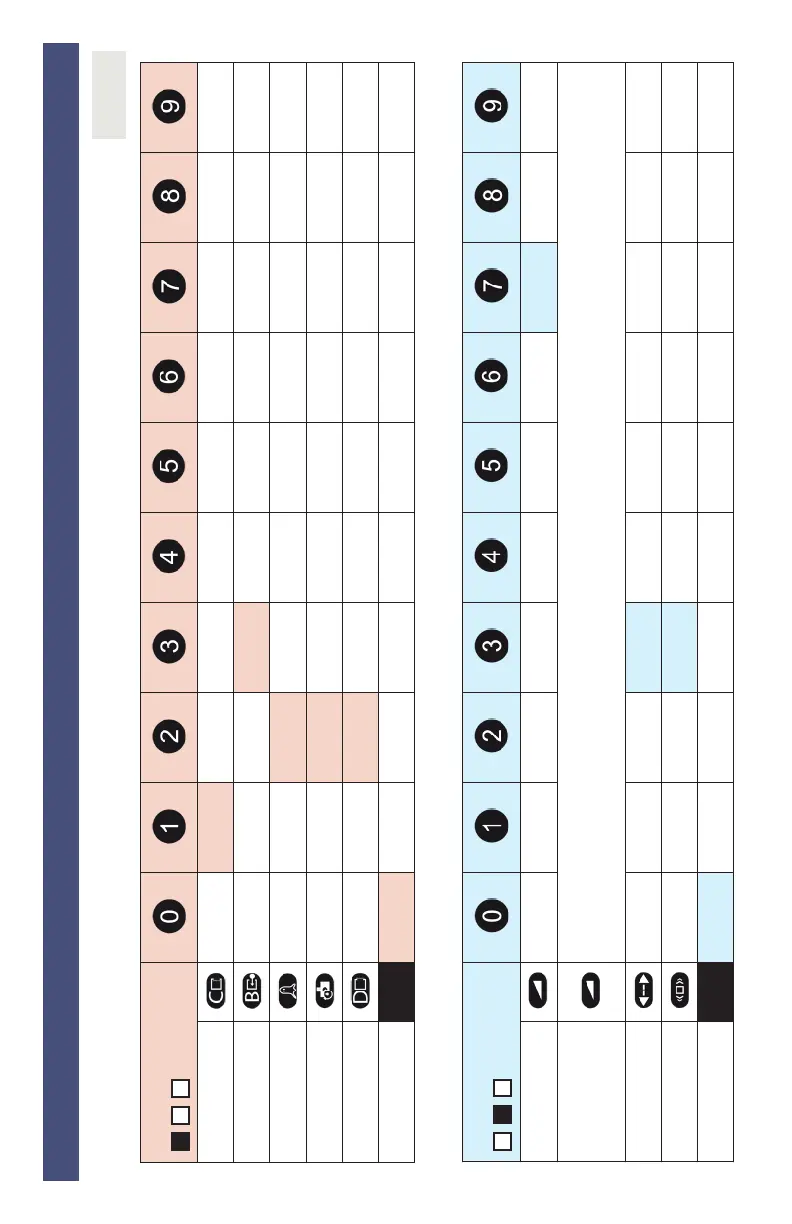 Use the following tables to aid in understanding settings set by either LCD menu or remote control.