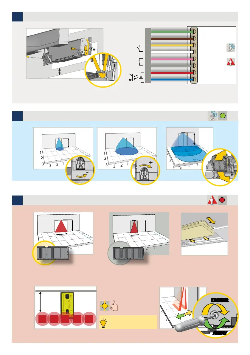 Detection field width indicated according to conditions defined in EN 16005 and including dimension of test body CA.