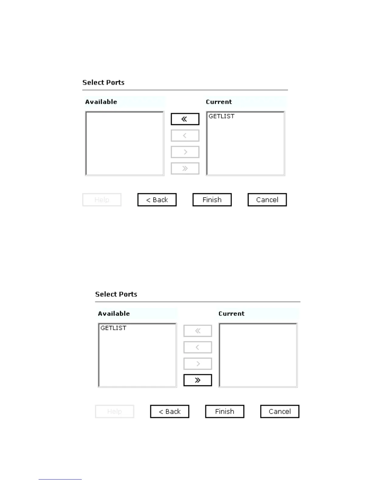 b. To transfer the port to the list of available ports, click the single left arrow button or