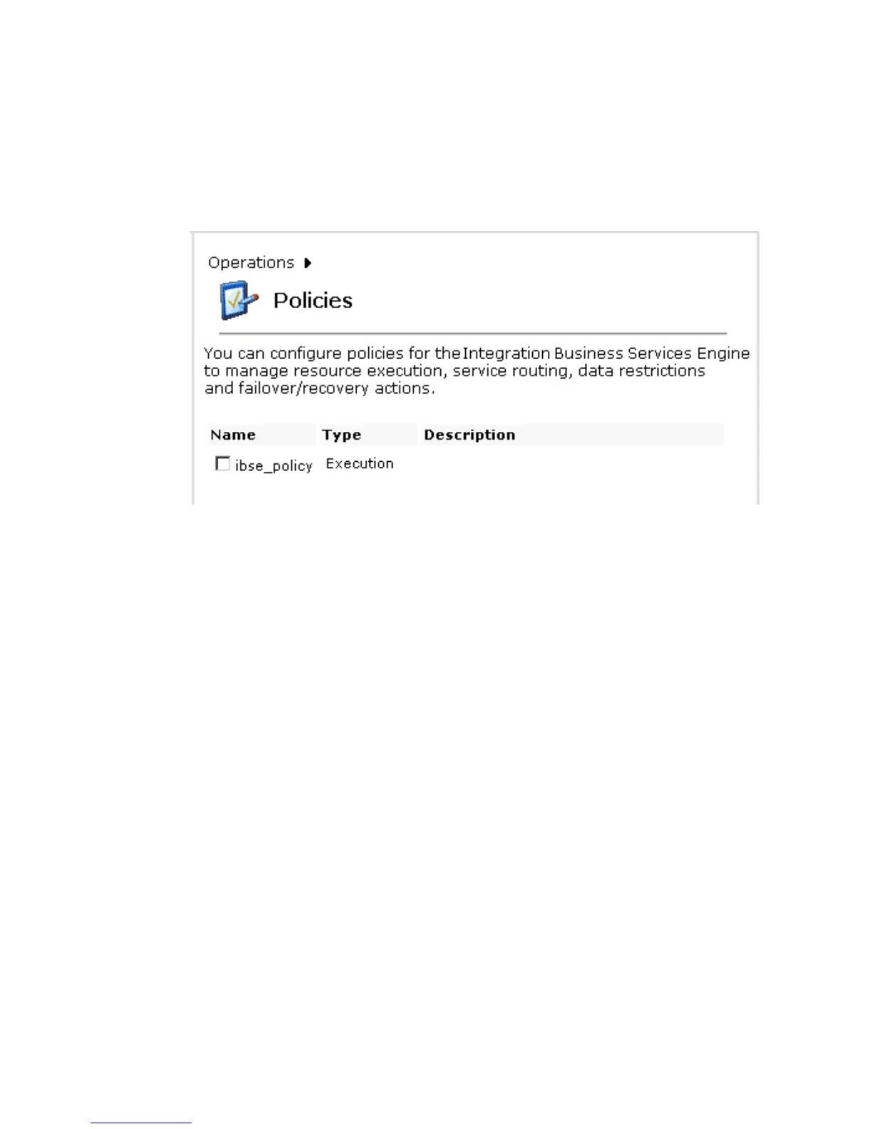 policies and the name, type, and description of the policies, as shown in the following