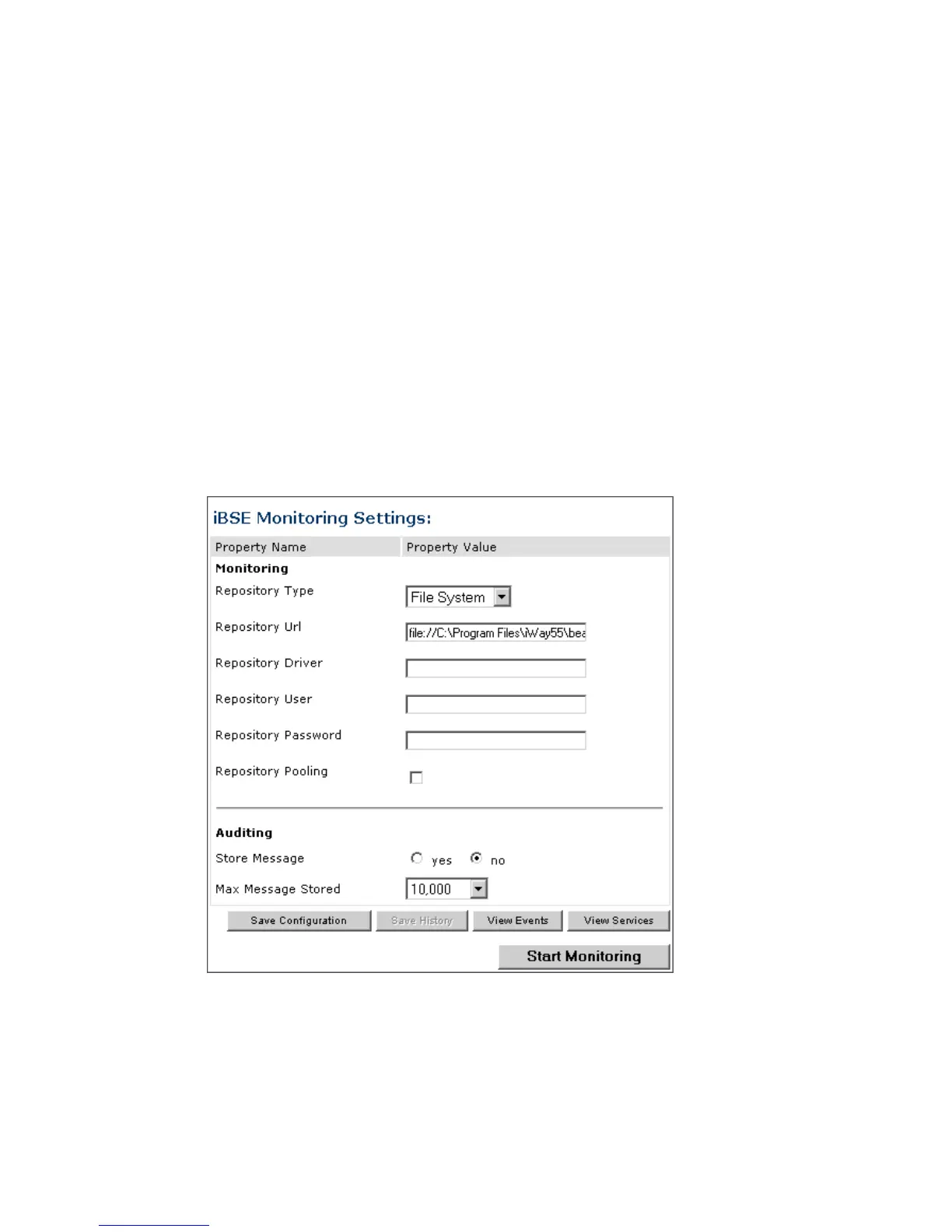 a. In the Monitoring pane, from the Repository Type drop-down list, select the type of
