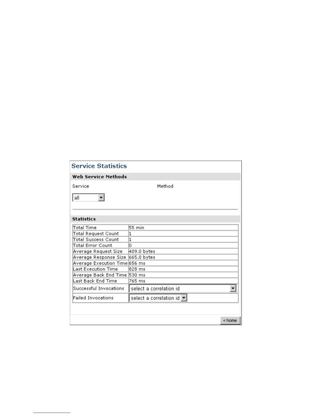 appear. The Statistics pane contains a table with a summary of service statistics and