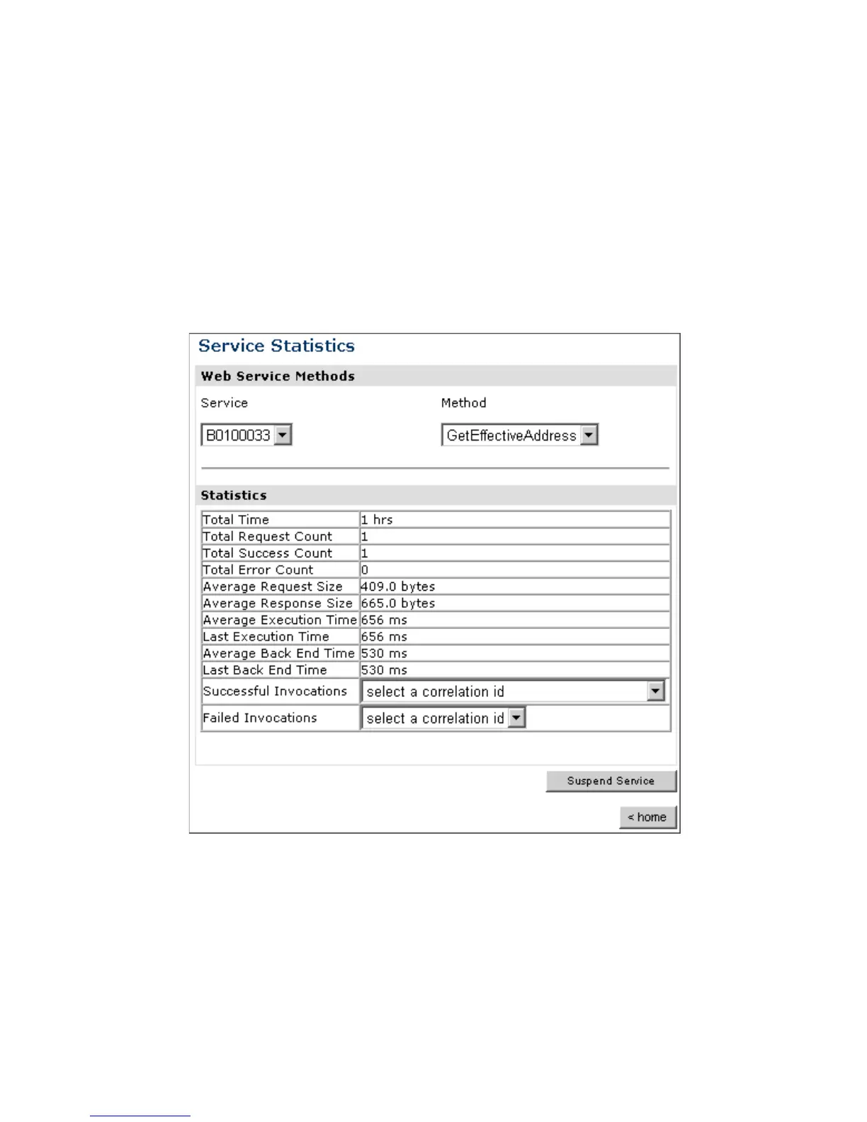 from the Successful Invocations or Failed Invocations drop-down list. To suspend or