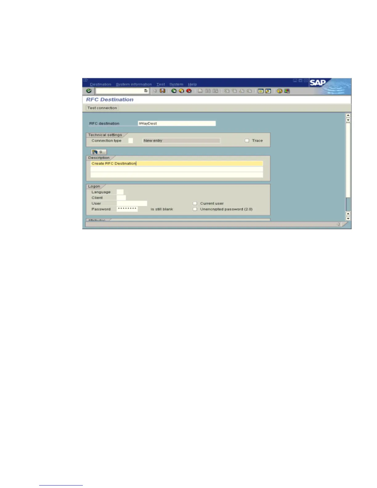 a. In the RFC destination field, type a name, for example, IWAYDEST.