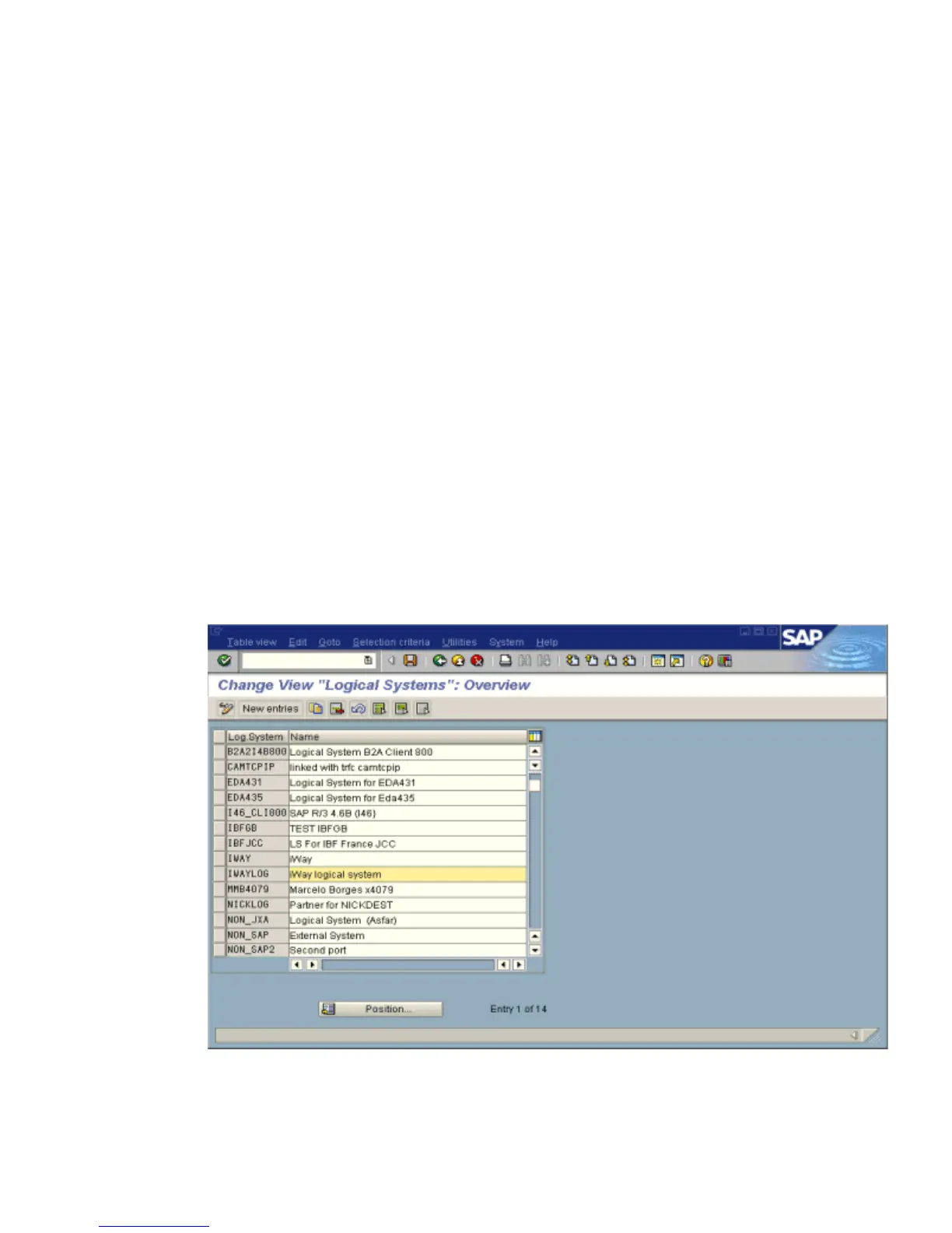The Change View “Logical Systems”: Overview window opens and displays a list of