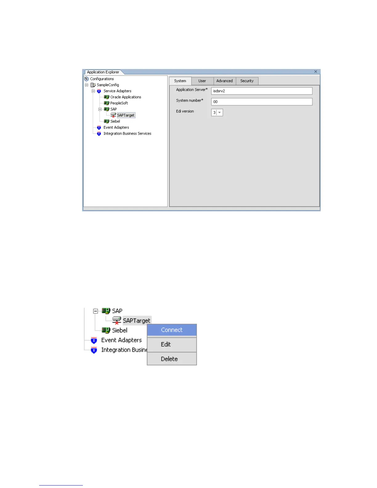 The SAPTarget node in the left pane changes to reflect that a connection was made.