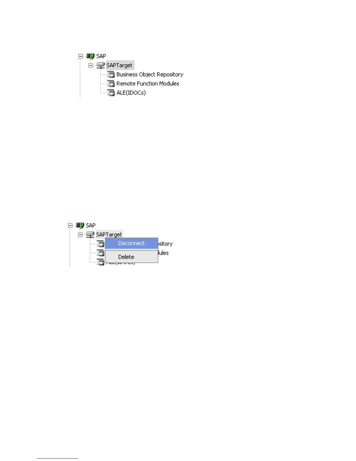 remains. The SAPTarget node in the left pane changes to reflect that you disconnected