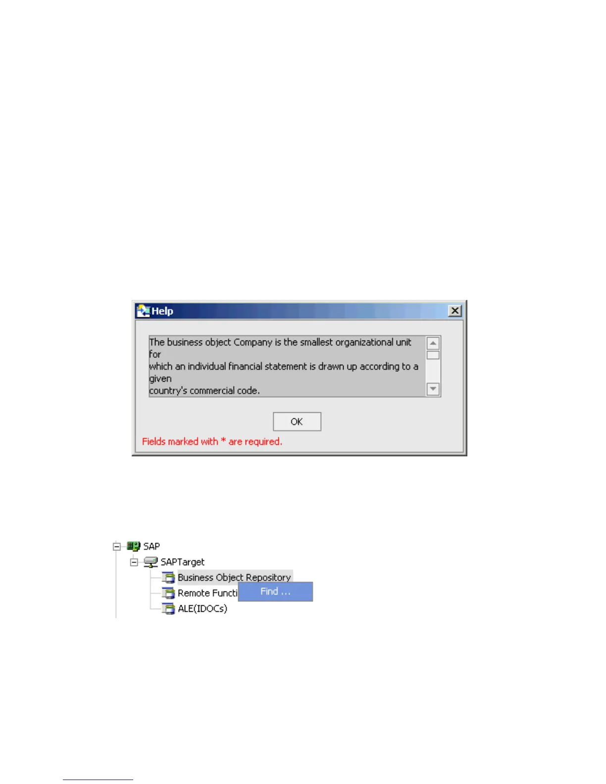 1. Right-click a component, for example, Company, and select Help.