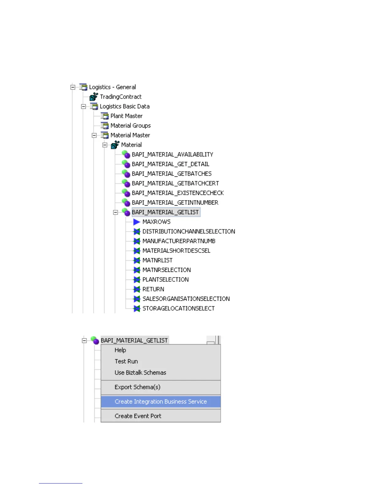 1. Select the BAPI_MATERIAL_GETLIST method from the Business Object Repository.