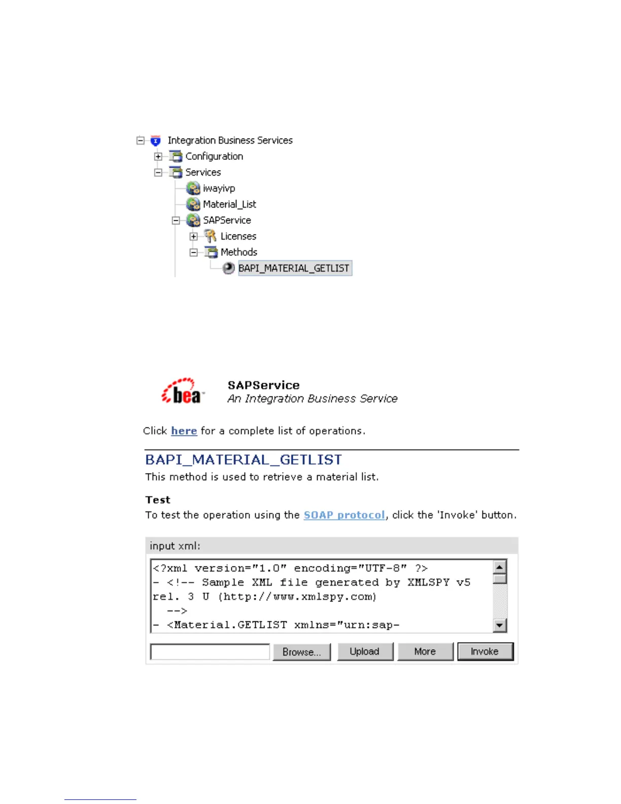 5. To invoke the service, enter a sample XML document in the input xml field.