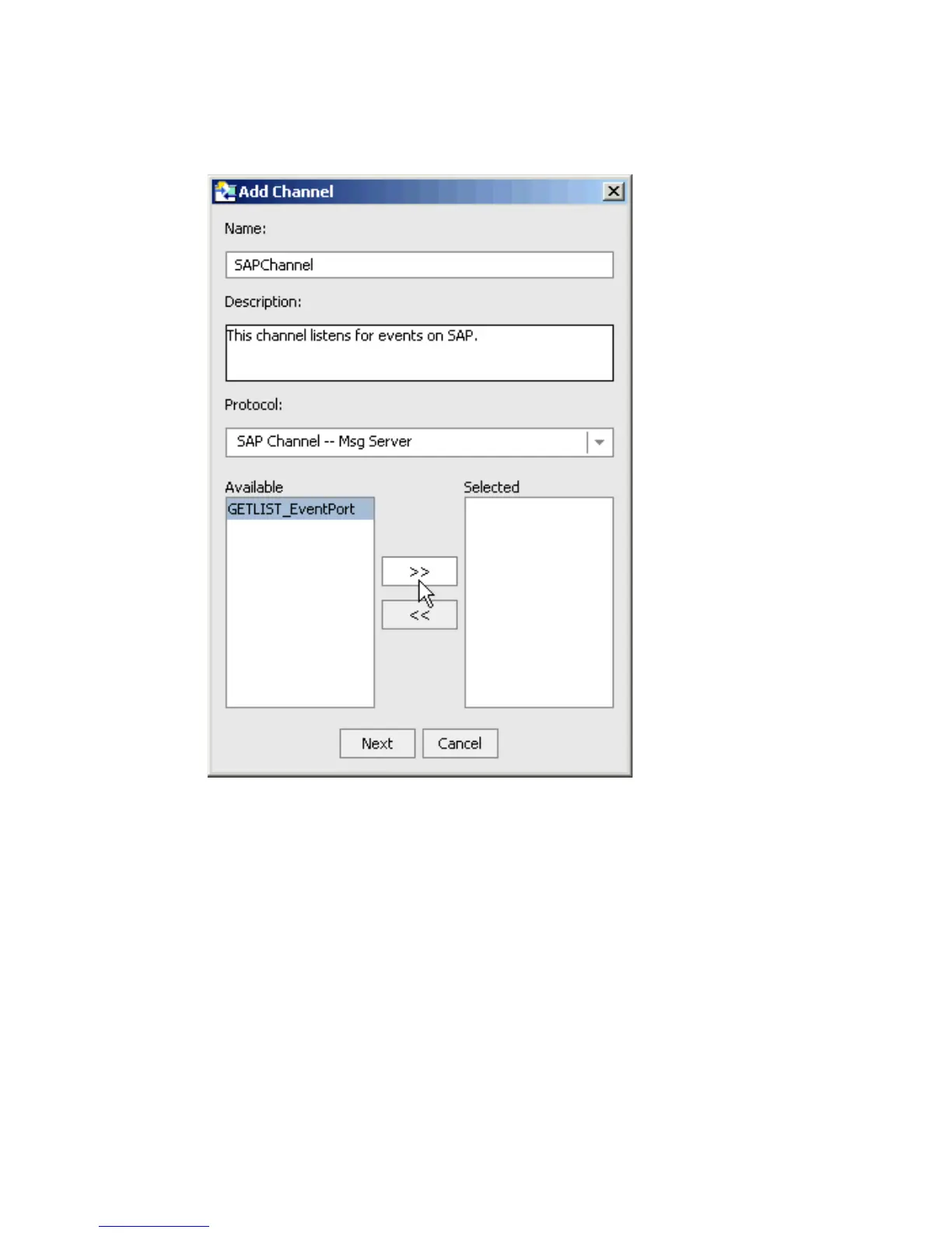 d. To transfer an event port from the list of Available event ports to the list of Selected