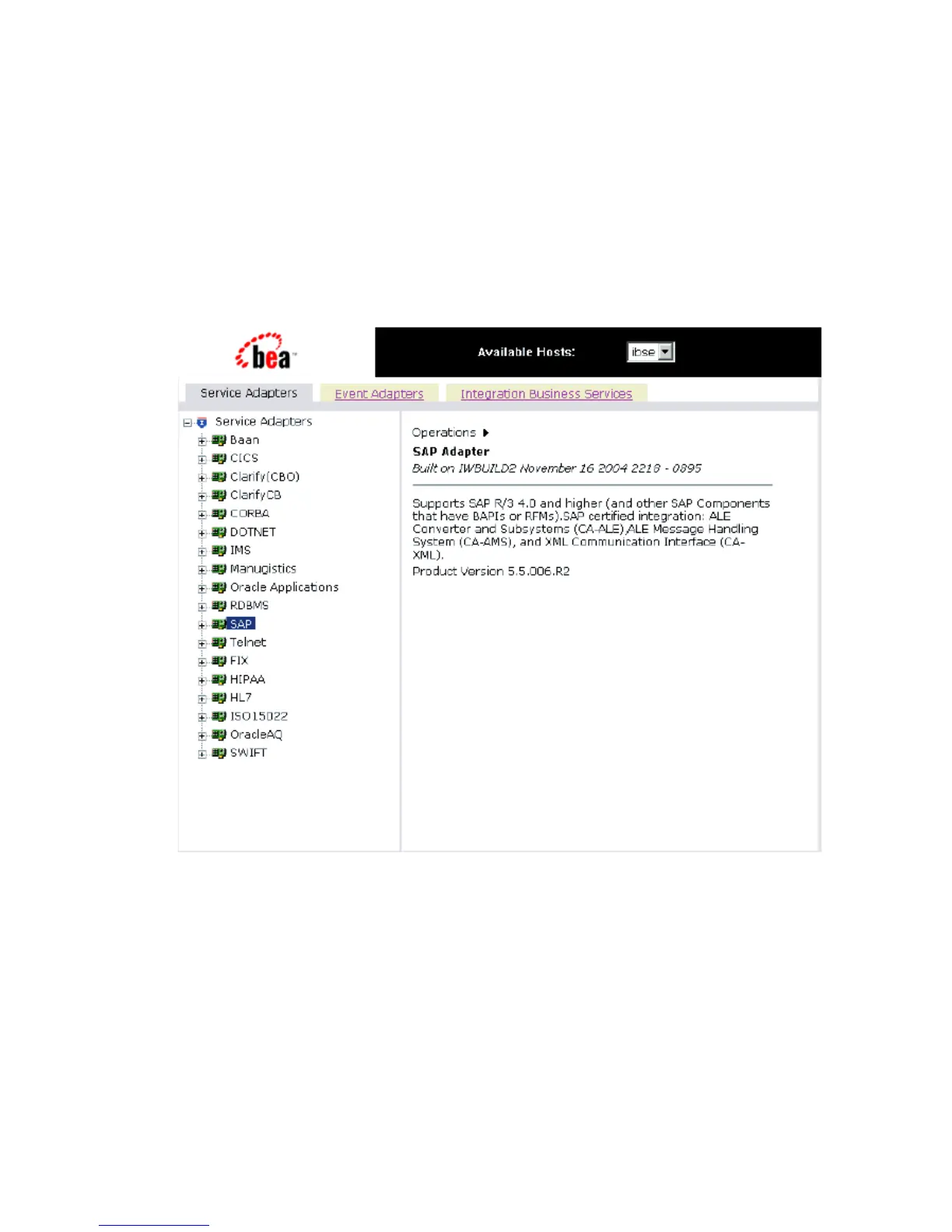 WebLogic Adapter for SAP appears in the right pane.