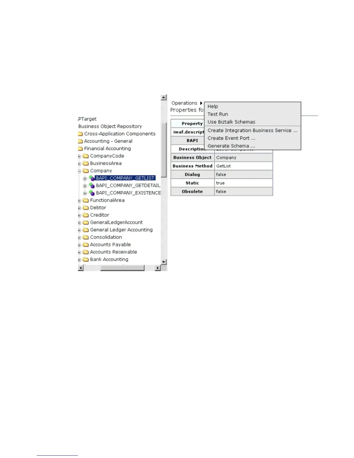 properties and values for the BAPI method named BAPI_COMPANY_GETLIST in the