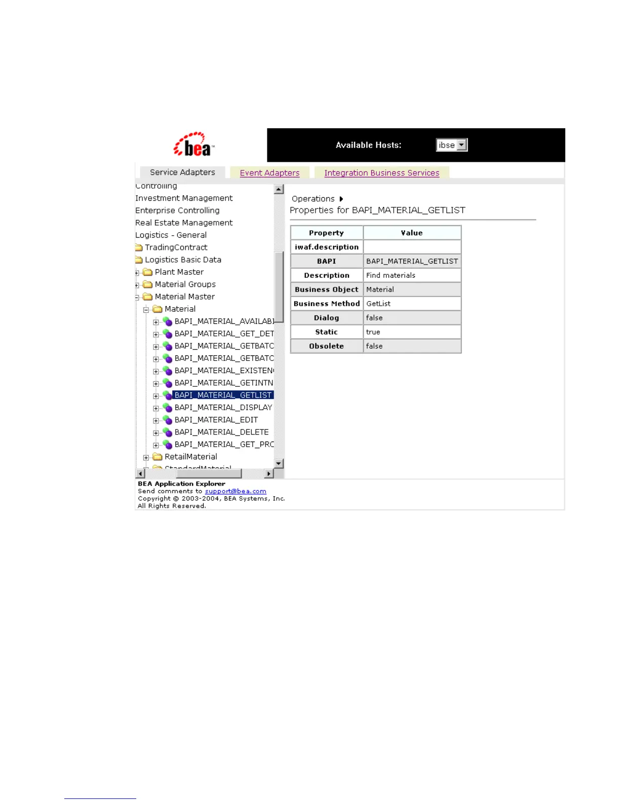 properties and values for the BAPI method called BAPI_MATERIAL_GETLIST.