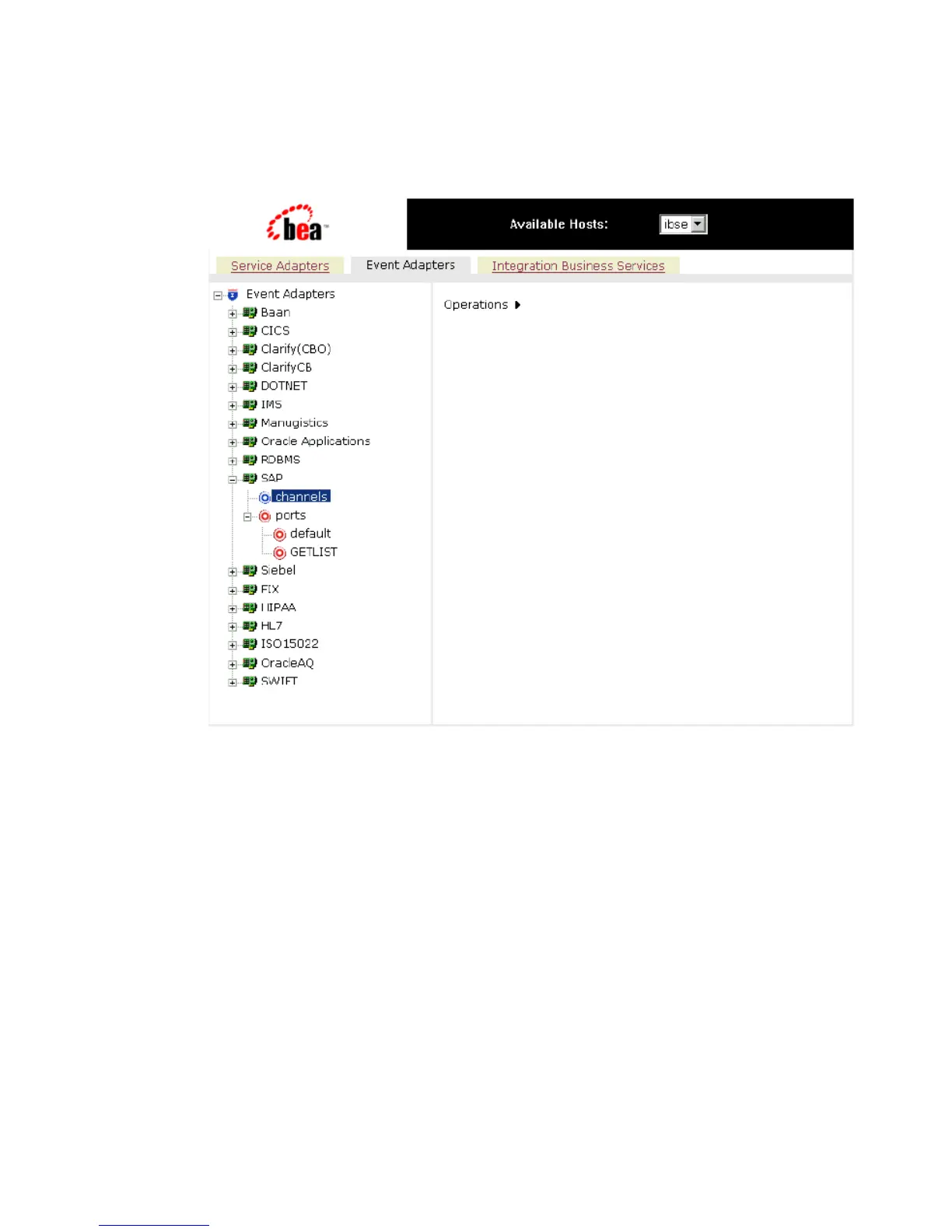 2. Expand the Event Adapters node, for example, SAP.