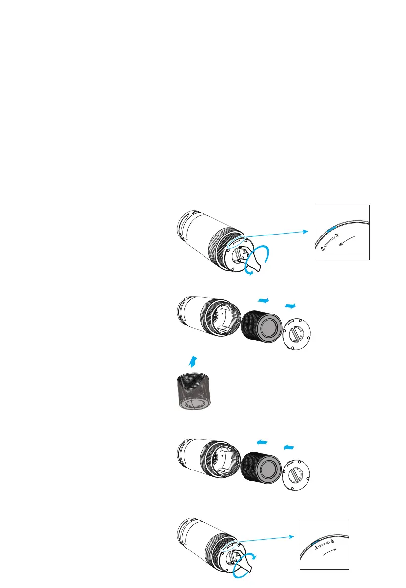 6. Ponownie założyć pokrywę oczyszczacza i obrócić pokrywę w kierunku zgodnym z ruchem