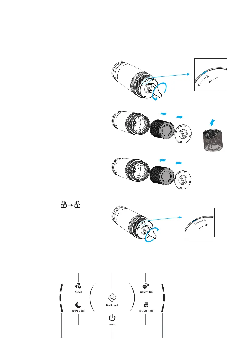 5.Replacer le couvercle sur le purificateur et tourner le couvercle dans le sens des aiguilles d’une