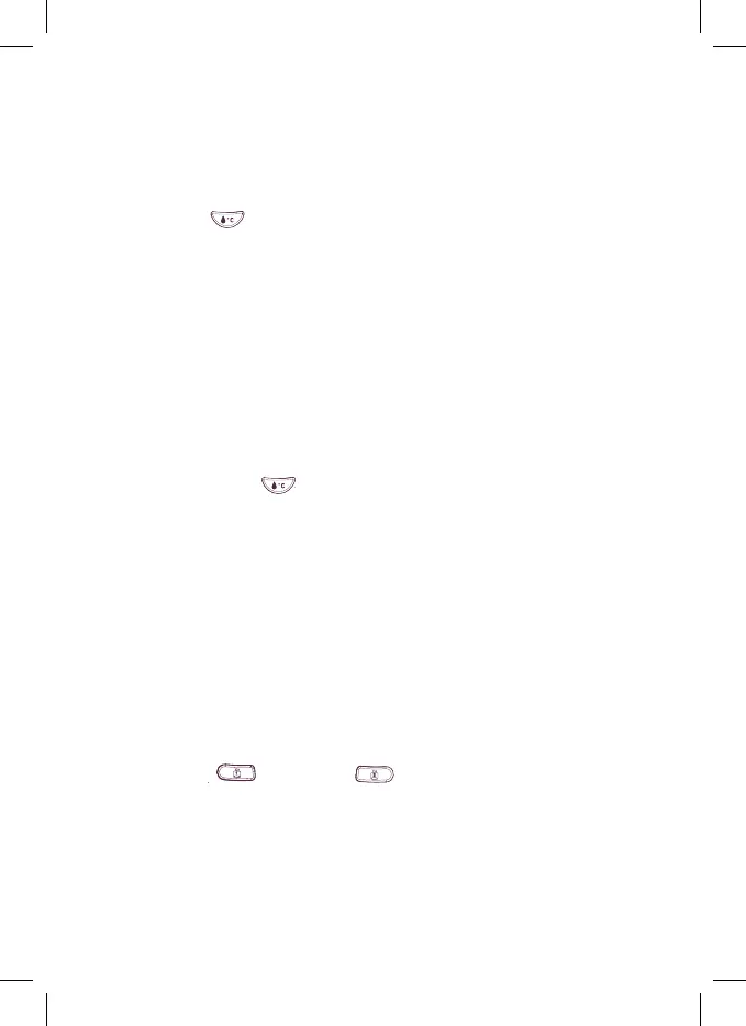 • Så snart vannet har nådd riktig temperatur (ca. 37 °C) står knappen på tent