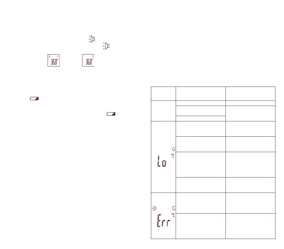 • A ogni accensione del termometro, esso rileva il livello delle batterie.