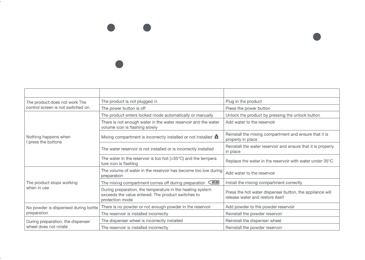 7. Before storing the product, empty and clean the powder reservoir and the water reservoir. To empty any excess water