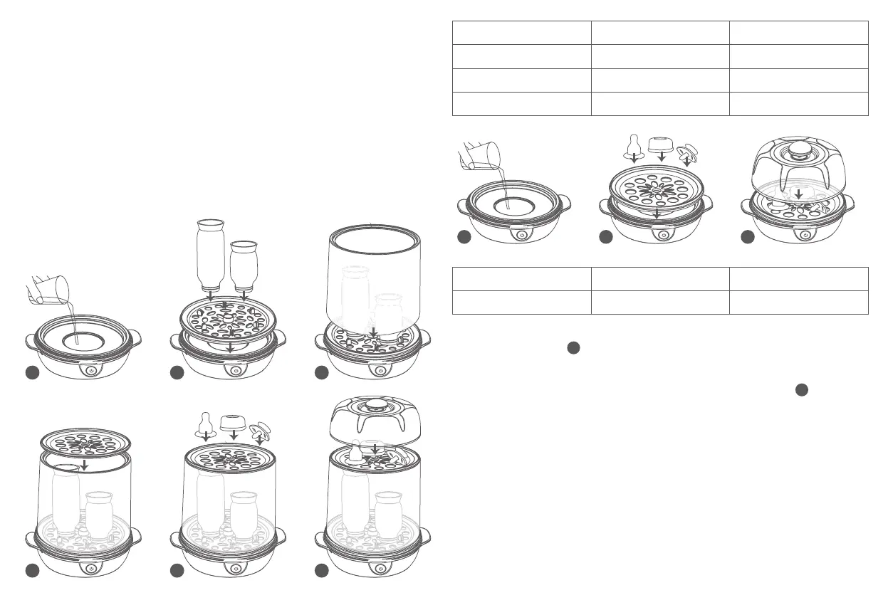 • Перед первым использованием выполнить цикл стерилизации со 100 мл воды без бутылочек и