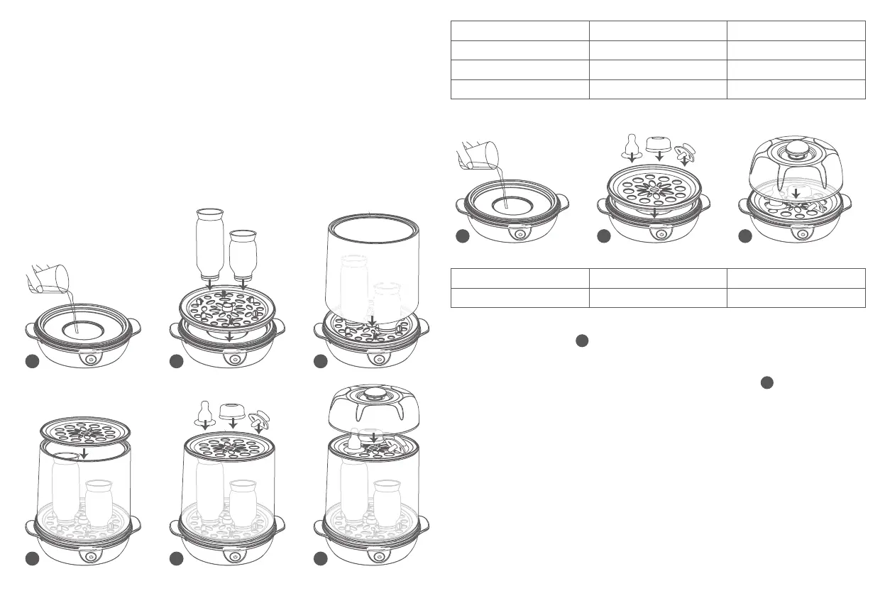 • Antes da primeira utilização, efectue um ciclo de esterilização com 100 ml de água e sem biberões