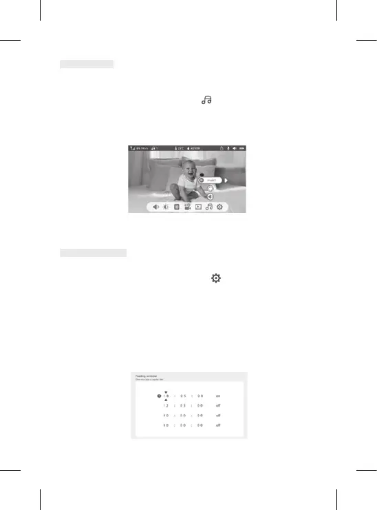 Pode selecionar várias músicas, alterar a música, o ciclo de música e ajustar o volume da música.