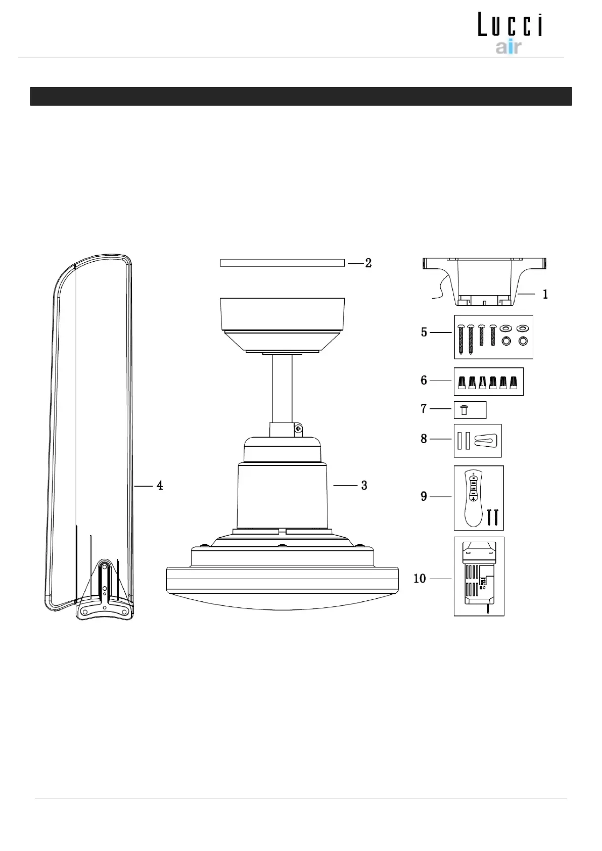 • Desembale su ventilador de techo y saque todas las piezas y la tornillería.