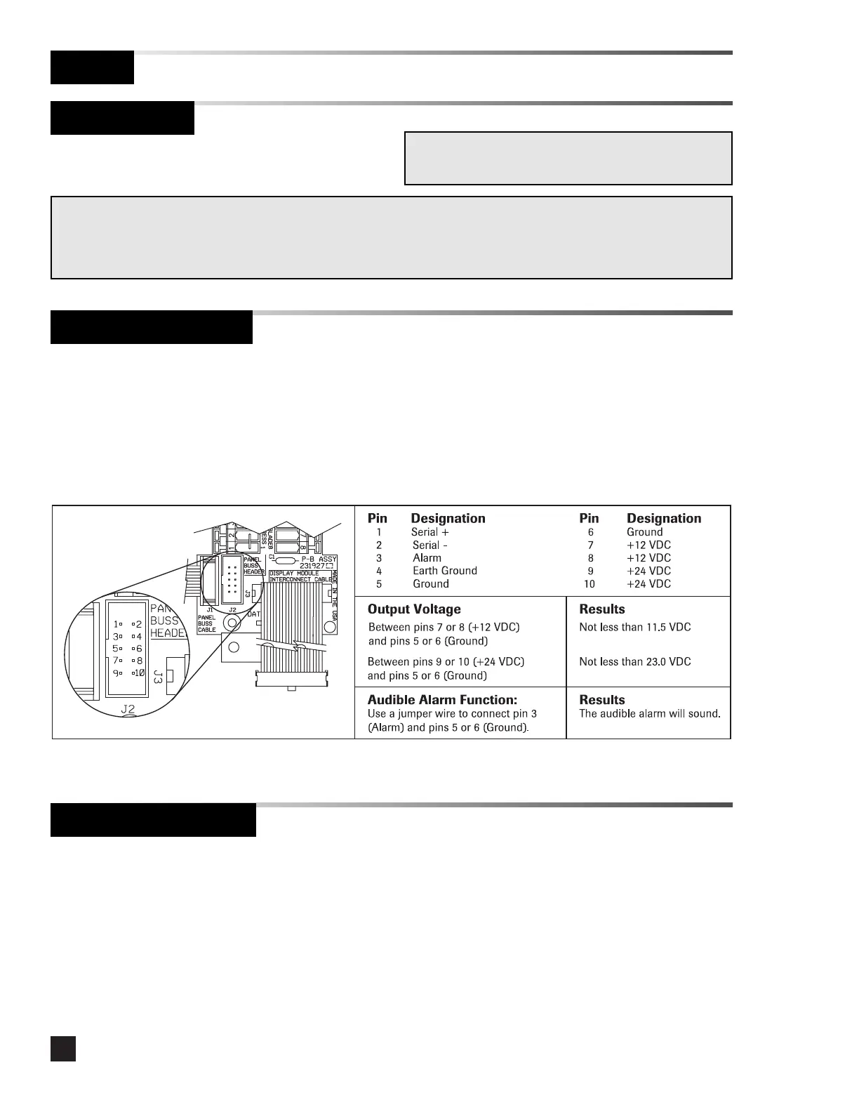 the output at the power supply ten-pin connection (J2) on the circuit board as defined in the chart
