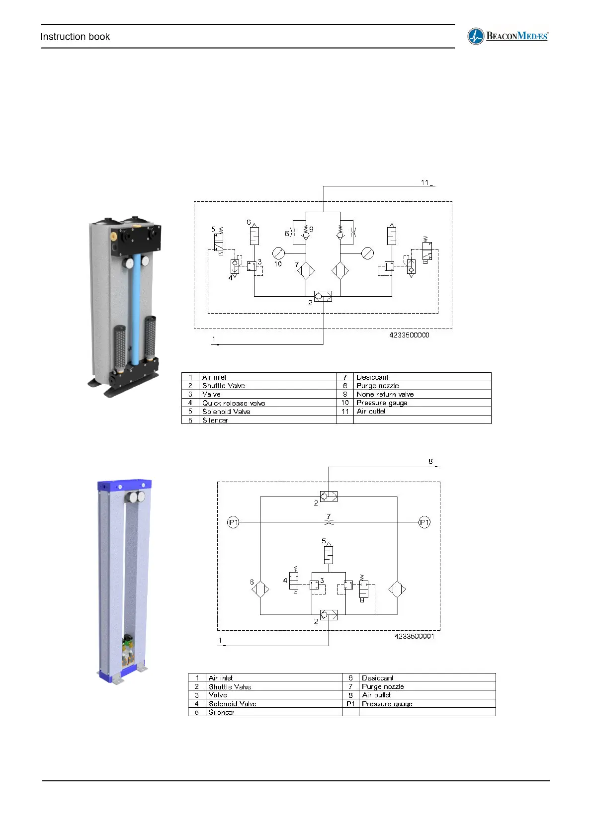 consists of two vertical cylinders (towers), containing the adsorption material (desiccant). This